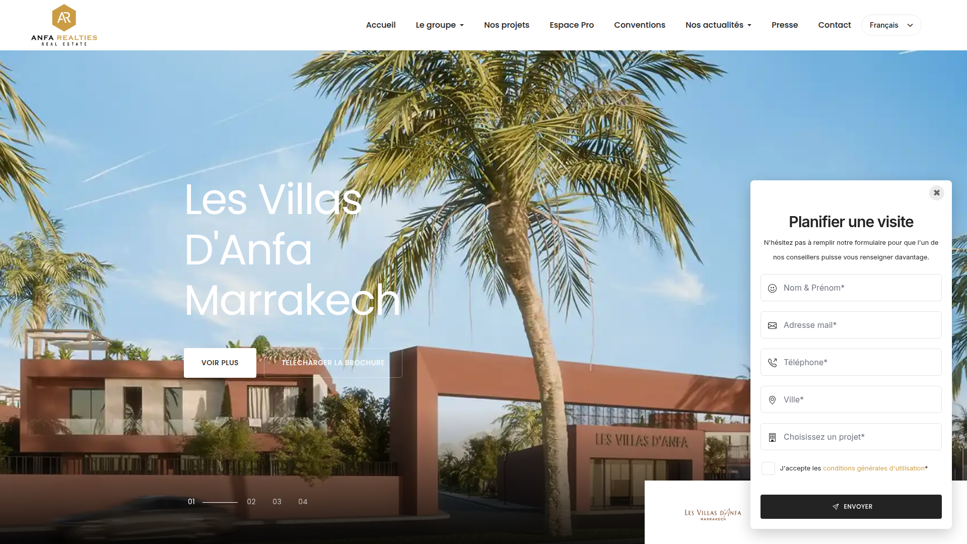 AnfaRealties.com (often styled as Anfa Realties) is the official website of Anfa Realties, a Moroccan real-estate development company headquartered in Casablanca, Morocco. The site and company focus on property development, sales, and management, particularly residential and mixed-use real estate projects.